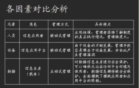 将复杂的信息应用简单化后可以看到,数据应用环境中最重要的三个要素是:人员、数据和设备(如图三)。最根本的问题在于对数据本身这一要素的保护。解决了数据本身的安全保护问题,也就解决了数据泄密的问题。思智ERM (Enterprise Right Management 企业权限管理)就是一套针对于企业级用户的数据安全管理系统。它能够对 Microsoft Office 、 CAD 、 PDF 等任意格式的电子文档及设计图纸进行加密保护,并且能够对加密的文件进行细分化的应用权限设置和备份保护。它有效地实现了数据本身的安全保护,从根本上解决了保密数据泄露的问题。